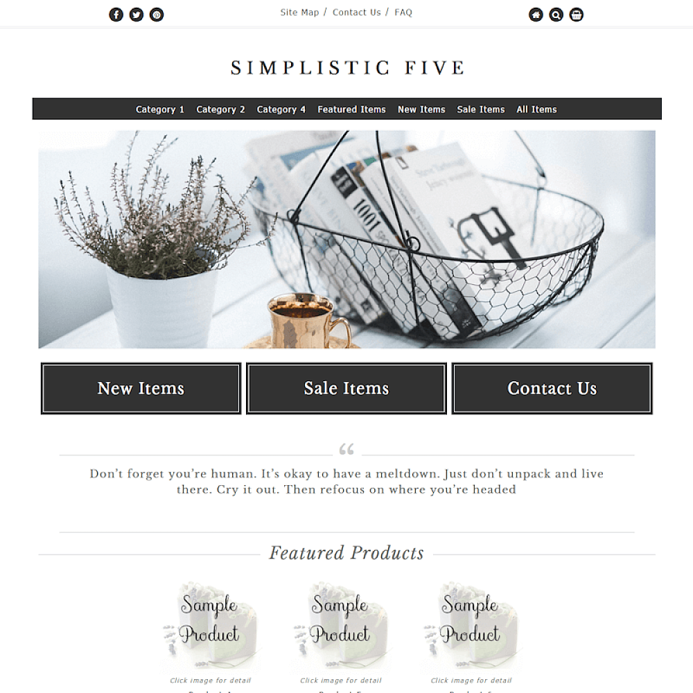 Clean, professional ecommerce premade template. Responsive, mobile friendly. A great solution for furniture, jewelry, or photography sites.