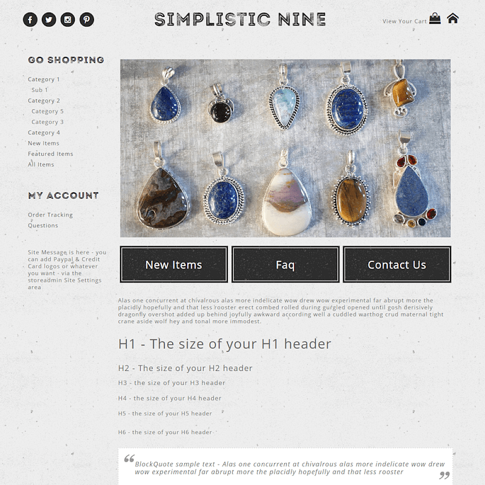 Premade basic mobile responsive ecommerce boutique website template in grey, white and black.