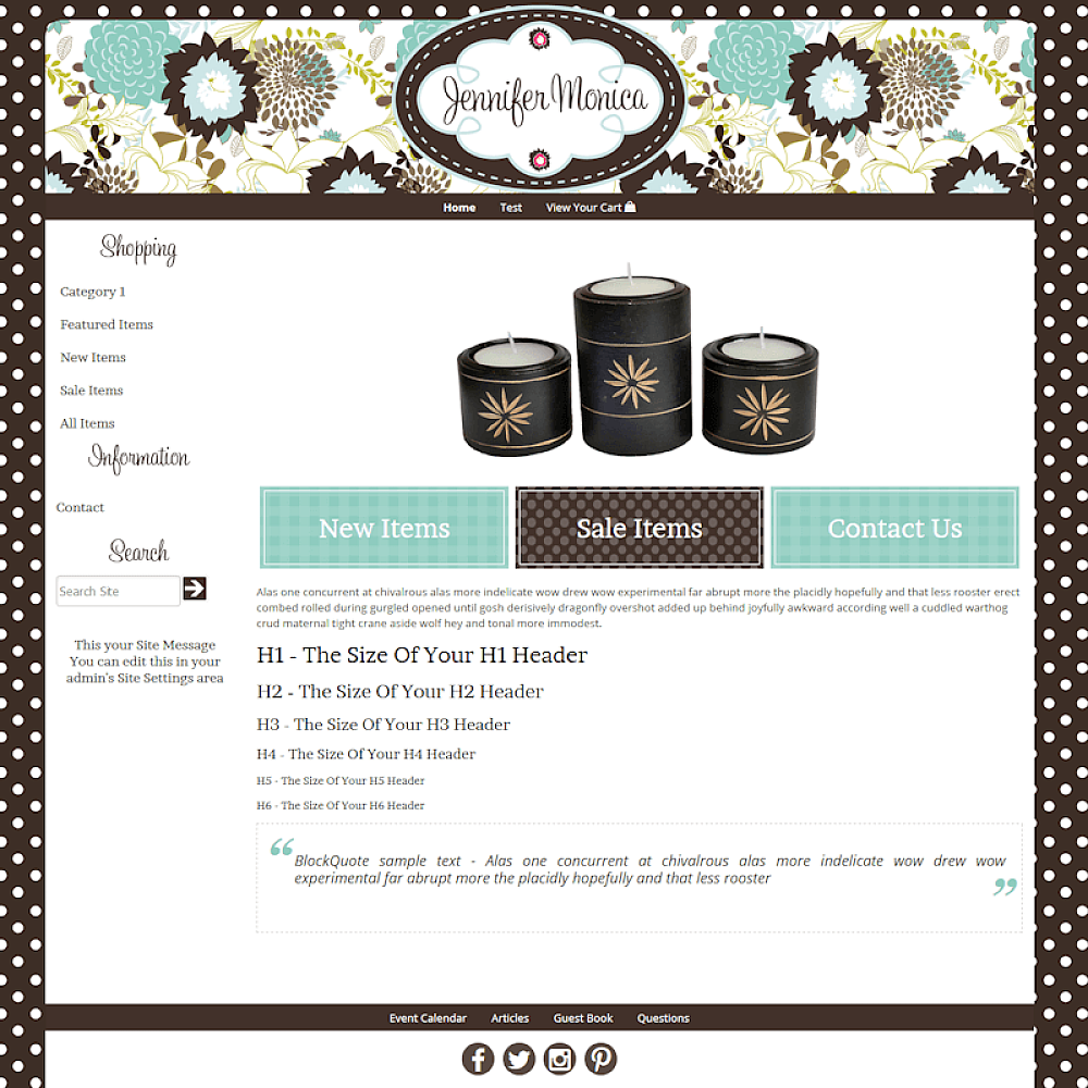Premade mobile responsive ecommerce website template in brown, blue and